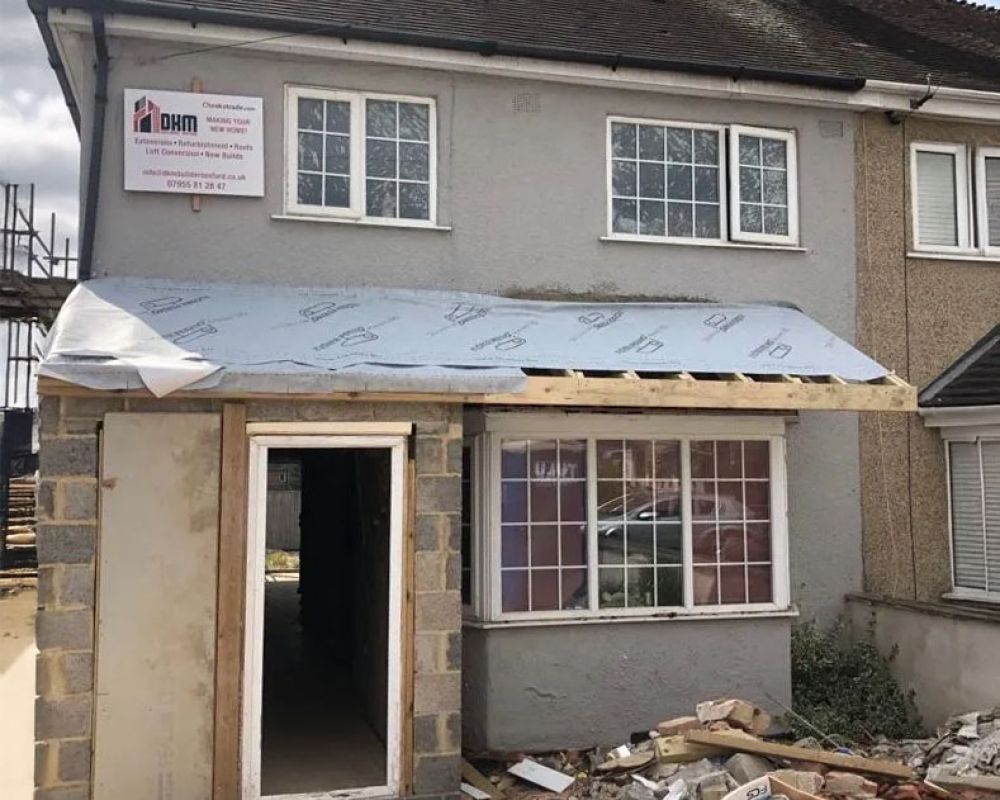 As part of the early stages of the project, a new front porch was constructed. This formed part of the overall redesign of the property’s front elevation and was completed prior to progressing with the main structural phases of the build.